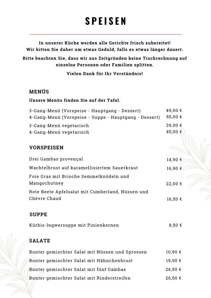 Dafür bringen wir beste Produkte aus der Region und Spezialitäten aus der mediterranen Küche auf den Teller, schauen aber gerne auch über dessen Rand: Denn neben mediterranen Meeresspezialitäten und Klassikern der französischen Küche lassen wir auch regelmäßig nordafrikanische Einflüsse in unsere Kreationen einfließen.